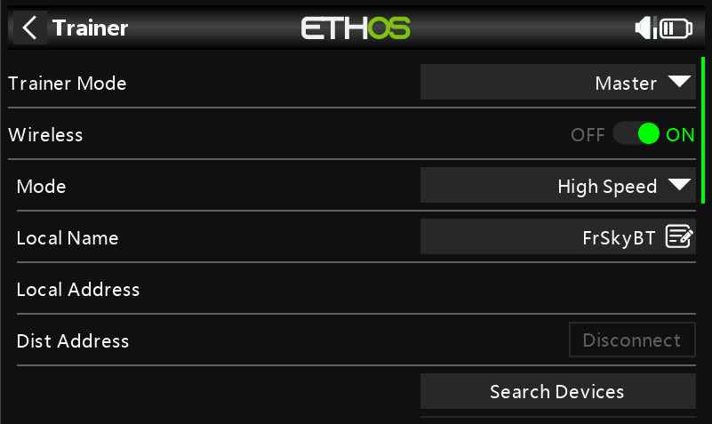 Here we select :     Trainer mode -> Master     Wireless -> ON   &#x20;