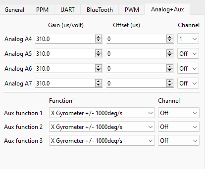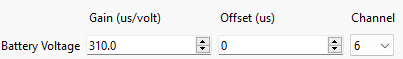 * Gain sets the scale in uS/Volt. A 0-3.3V signal with a max channel value of 1024us works out to 1024/3.3=310 (Which is the GUI default)
