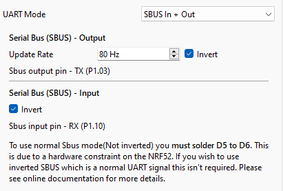 * Invert - These will invert the SBUS signal either RX or TX.&#x20;