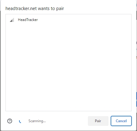 Click the Head Tracker and then Pair. It should start receiving all the settings.